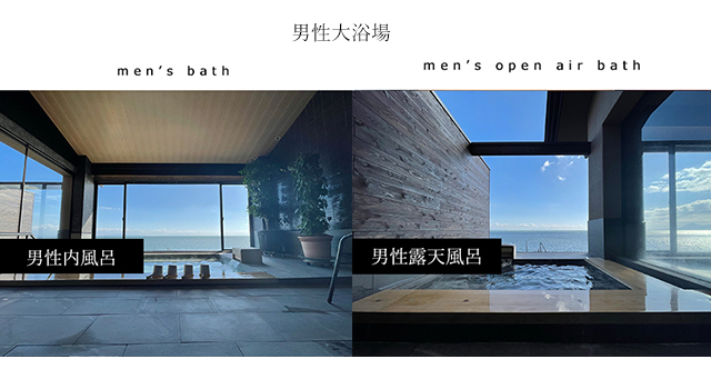 海の見える露天風呂付のお部屋が全6室入りたいときにお湯を溜めてご利用くださいませ。海に面した露天風呂にはシャワーと湯上りスペースがございます。シャンプーやボディソープを完備。夜はキャンドルをつけて幻想的な温泉時間もお楽しみいただけます。