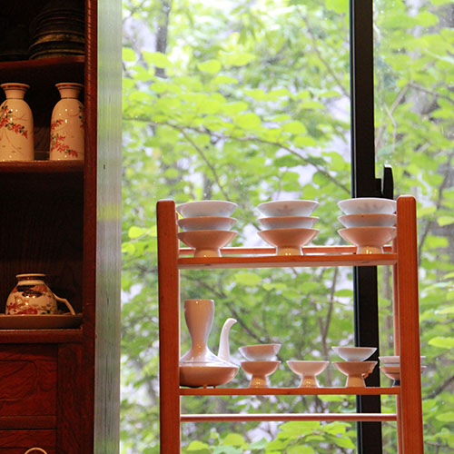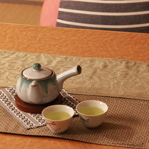 お部屋でゆっくりお寛ぎいただけるようにお茶セット等ご用意しております。こだわりの陶器でゆっくりと会話とお茶、お茶菓子時間をお過ごしください。