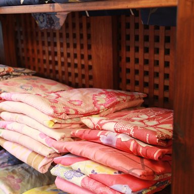 可供選擇的多色浴衣酒店內準備有各種不同顏色、不同花紋的浴衣和浴衣帶。