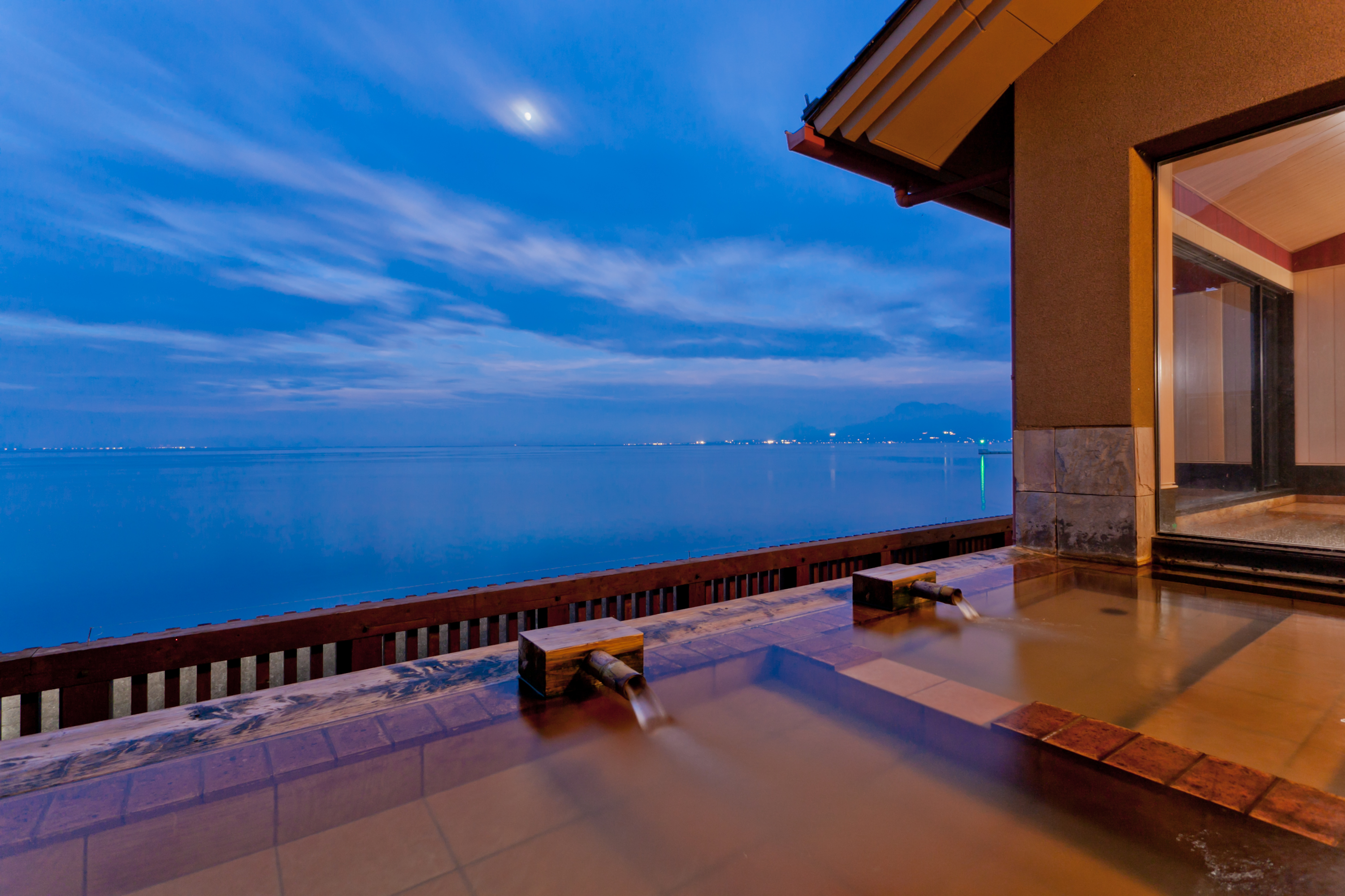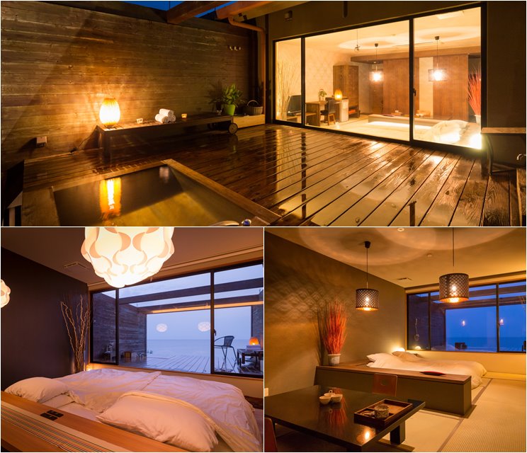 附帶溫泉浴池的客房店內附帶露天溫泉浴池的客房人氣極高。房間內的露天溫泉浴池面海而建,視野開闊。想泡溫泉時,打開露天浴池的水龍頭,溫泉水便會緩緩流出,蓄滿浴池。