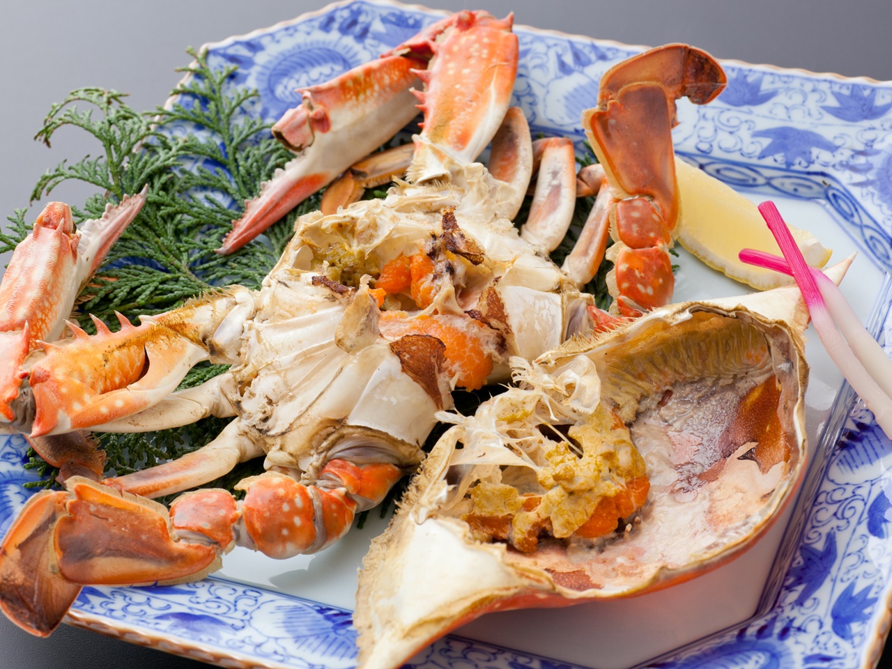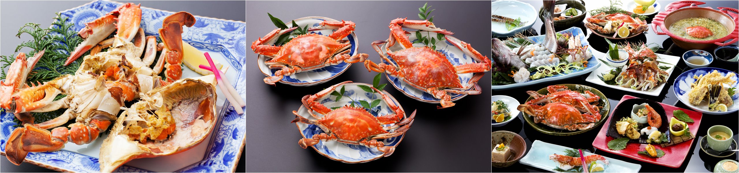 酒店每天使用太良町名產竹崎蟹(Takesaki-Kani)、以及當天從有明海捕獲的新鮮牡蠣、大蝦、蠑螺、當季鮮魚、貝類等新鮮海味製作生魚片,以及煮物(熬煮菜肴)、燒物(燒烤菜肴)等。
